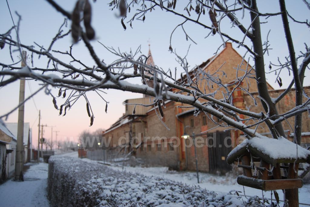 Sowas passiert, wenn Neuwestdeutsche Elektriker westdeutsche Elektrik an ostdeutsche Pfeiler hängen... Vor ein paar Jahren war die Straße auf: Fürs Kabelfernsehen. Der Strom aber bleibt in der Luft.