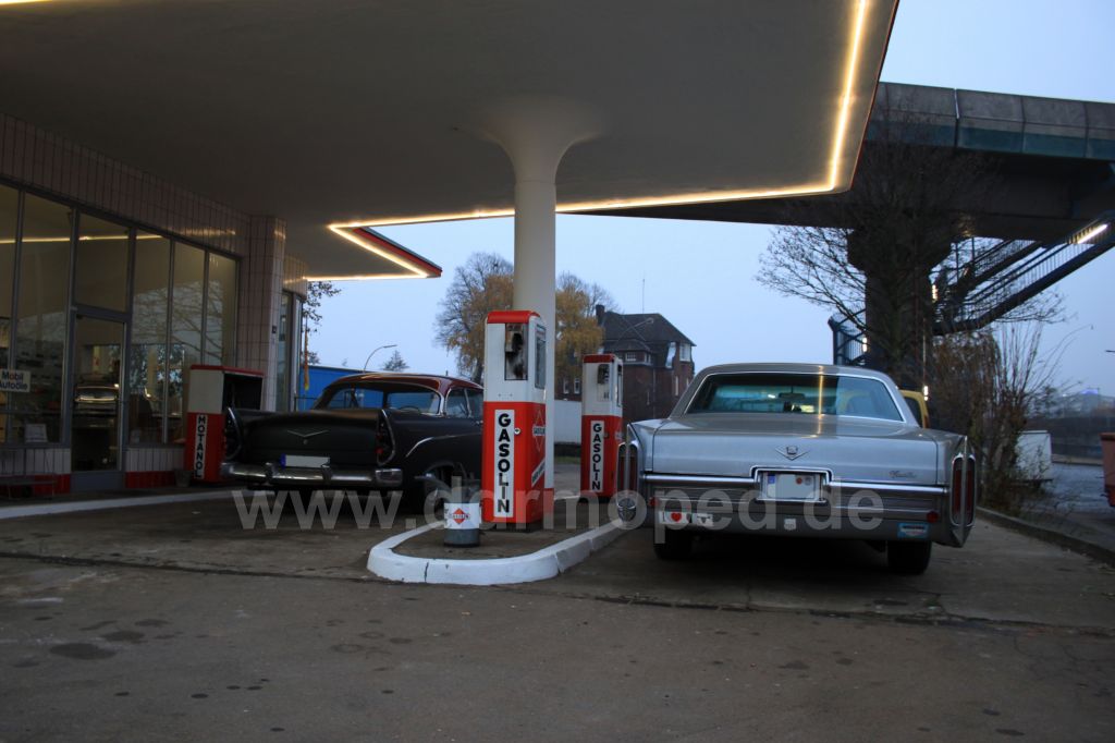 Hamburg hat eine alte Tankstelle der 50er als Kulturgut unter Denkmalschutz gestellt und restauriert. Nun ist sie ein Anlaufpunkt für Oldies aller Art und eine Ptüfstelle.