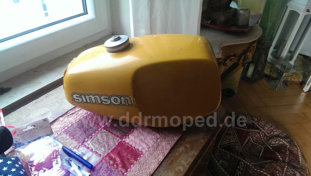 Oh Gott, kannste den Tank nicht mit jemandem tauschen, gegen einen abgeranzteren, oder überlackierten? Wenn du eh strahlen willst.. Hochtanks mit gutem Originallack werden immer seltener..