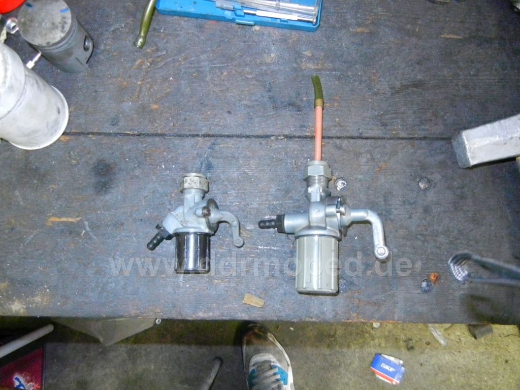 Das Schwierige ist ebend, die Dinger dicht zubekommen... Also ma schnell mit dem Akkuschrauber wird da nix. Zudem noch der Sprithahn (Diese kleinen Hähne lassen zuwenig durch). Ich hab nen MZ Hahn an der Simmi. Und gut atmenter Tankdeckel...