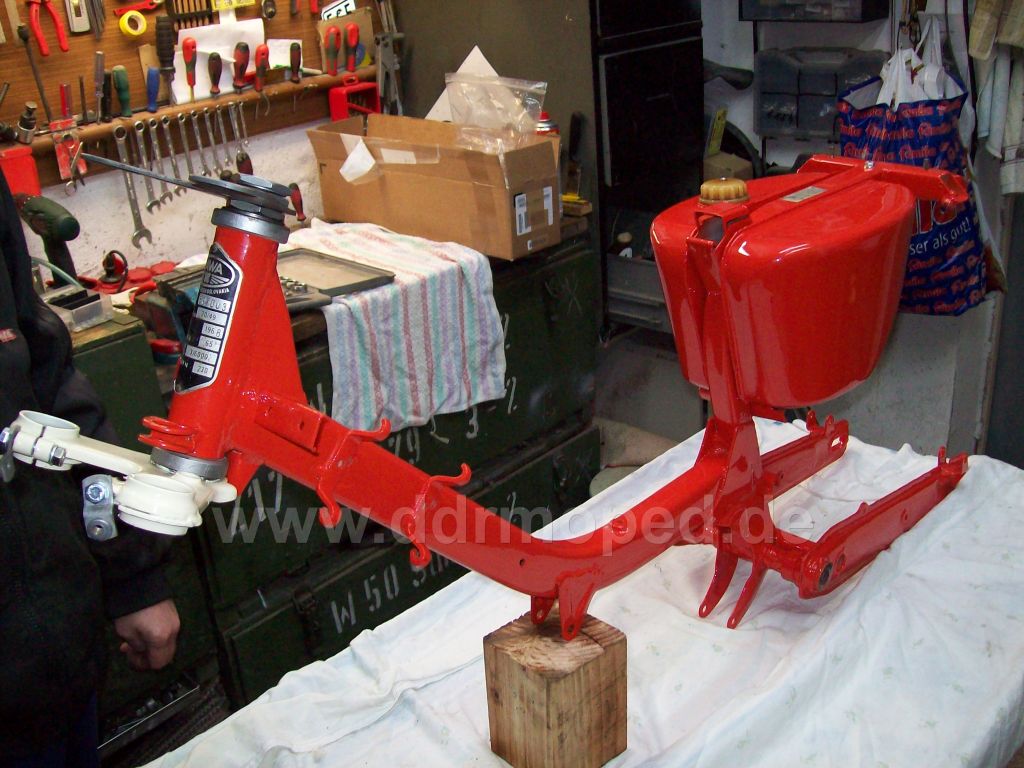 Heute waren sie trocken also konnte es an das zusammen Bauen gehen. Angefangen mit dem Tank und dem Lenkkopf.