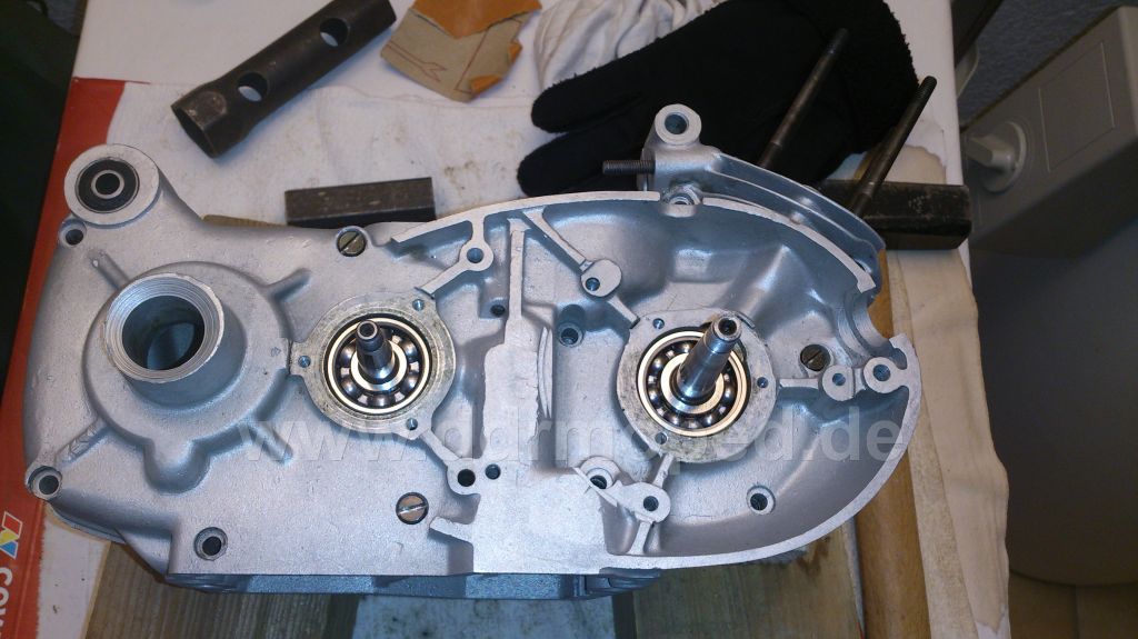 Montage1  Das Motorgehäuse ist fertig gestrahlt und die Zylinderschleiferei  ist beendet, alles zur vollen Zufriedenheit.  Bevor es an die Montage geht hab ich erstmal die Gewinde, Deckel und den Rest gesäubert. War auch nötig.