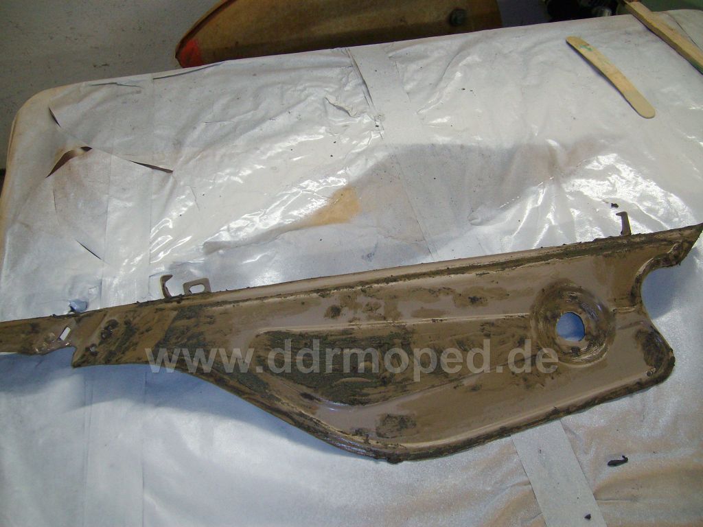 Guten Abend. Das Wochenende war wieder zu kurz. Aber trotzdem bisschen was geschafft am Essi. Plan diesmal- den Kettenschutz weitermachen. Das vorerst letzte Teil... Dazu habe ich den Kettenschutz gerichtet und teilweise verstärkt, dann grundiert und im original Farbton lackiert. Damit er später auch patina-mäßig passt, behandel ich ihn nun mit Rostlack. Dazu später. Nebenher wird der Star noch auf Vordermann gebracht- Achtung, Custom-Alarm!!! MfG Robert