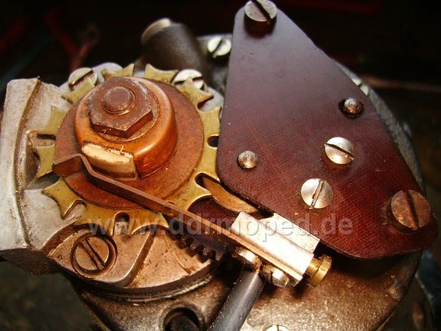 Das "komische Rad" ist ein sogenanntes 'Maltesergetriebe', was aber bei andere Hersteller in moderneren Ausführungen ein normales Zahnradgetriebe sein kann.