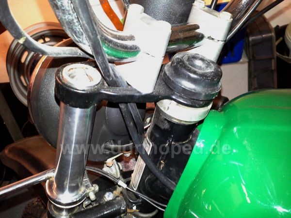 Ein Freund hat eine Simmi zum Fertigstellen da stehen... Da fiel mir die obere Gabelbrücke auf. Soein Tuning-Aluding scheint es schon mal nicht zu sein.