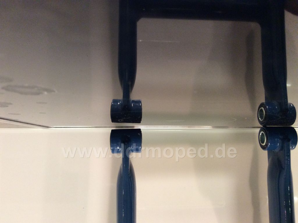 Hab die Schwinge mal plan auf das eine Auge gestellt. Dann steht das andere in der Luft. Scheint weniger ein Buchsen/Hülsen Problem als ein Schwingenproblem. Hab mal ein Foto von dem Dilemma gemacht. Kann man da was richten? Hmm Foto steht Kopf, aber hoffe man erkennt es. VG Thomas