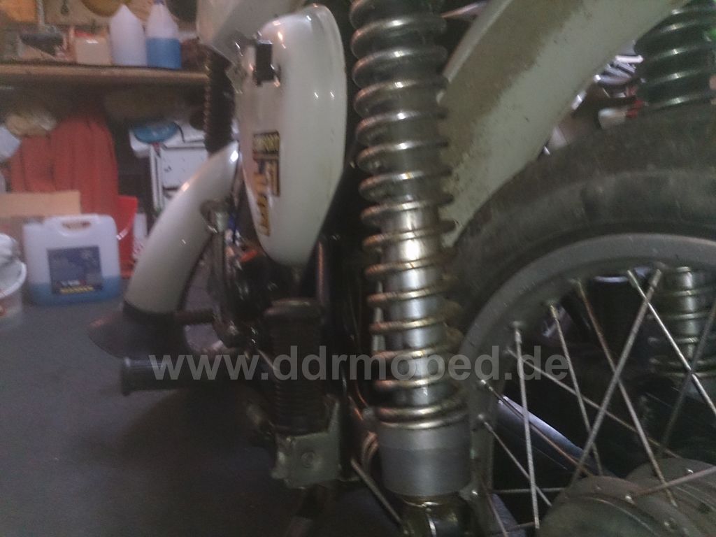 Stoßdämpfer hinten, der auf dem Gepäckträger ist der Richtige, der Rollerstoßdämpfer ist erst nach der Wende an der S53 so verbaut worden....