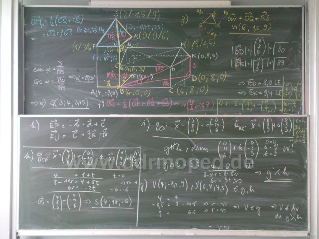 Heute haben wir in Mathematik mal unsere letzte Kursarbeit korrigiert und haben mal die Lösungen zur Tafel gebracht. Ich finde, dass meine Mathematiklehrerin die Fläche der Tafel fast optimal ausgenutzt hat. Ja da schaut ihr. Meint ihr, ihr würdet das jetzt noch auf die Reihe bekommen und wieder verstehen wie das damals so ging? Ach so: Das hier sind wohl gemerkt die Lösungen des ersten von zwei Teilen. mfG Max