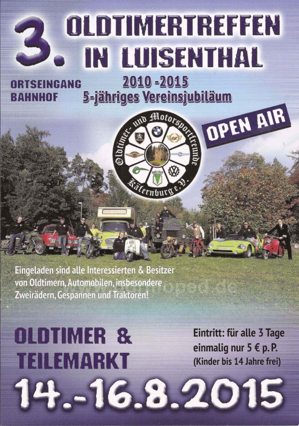 wir, die Oldtimer-Motorsportfreunde Käfernburg e.V. statten unser drittes Treffen in Luisenthal im schönen Thüringer Wald ab.