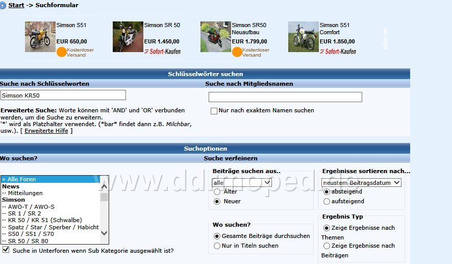 Alternativ nimm Google. Suchbegriff eingeben und dahinter noch ddrmoped.de
