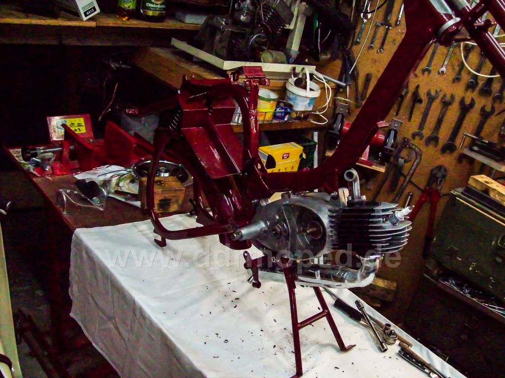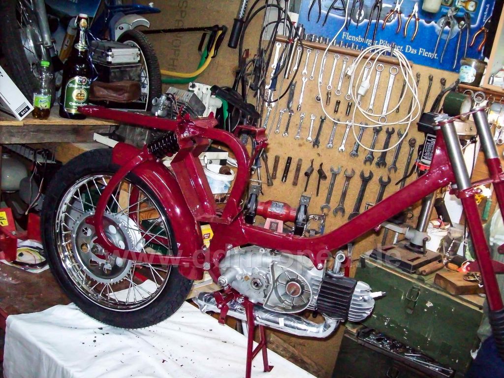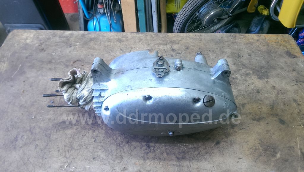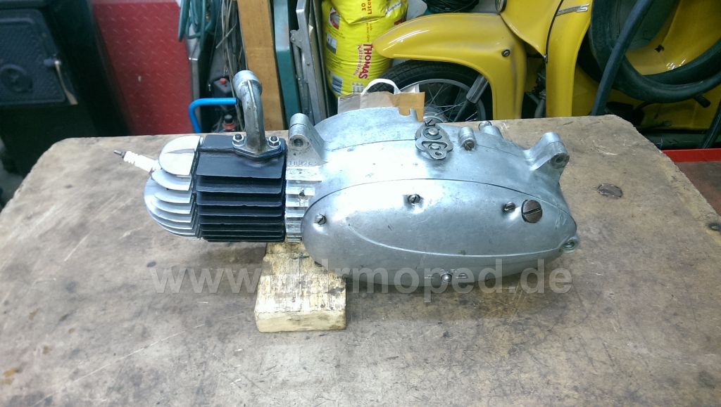 |  So nach langen geht es hier mal weiter. Ich hatte mir ein Spenderfahrzeug besorgt aber leider war auch da der Tank wie ein Sieb was bedeutet das ich immer noch keinen brauchbaren habe.  Da aber ein Motor dabei war hab ich einen neuen Kolben und Zylinder also konnte ich den Motor fertig stellen.  Zylinder und Kopf wurden gestrahlt und der Zylinder noch schwarz gemacht.