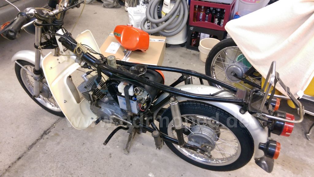 Was die Felgen betrifft so werde ich erstmal 2 Stück aus meinen Lager nehmen, diese sind zwar nicht einfach gekreutzt jedoch komplett neu aufgearbeit und noch aus DDR Zeiten. Mit der Zeit werde ich dann einfach gespeichte Felgen einbauen.