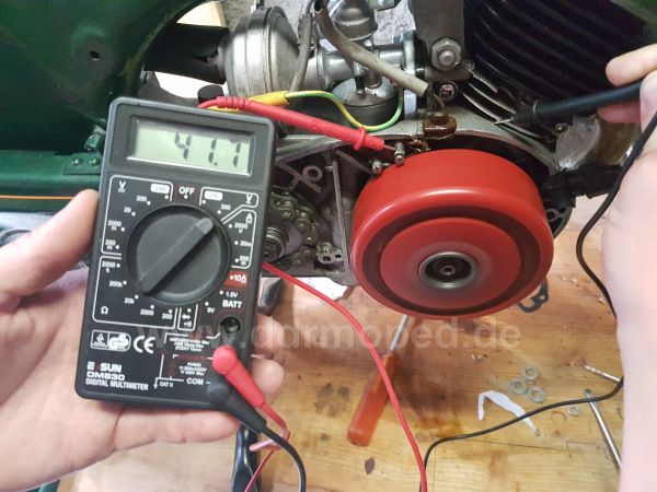 Habe einmal die Licht spule neben dem Kondensator abgehängt und so probiert :das Ergebnis war nicht schlecht so ca.6 Volt. mit nur einer Licht spule. Danach habe ich die neben dem Kondensator angeschlossen und die andere abgehängt. Ergebnis wieder nicht Gut. Alle Komponenten auf der Grundplatte sind Neu und es funktioniert einfach nicht.