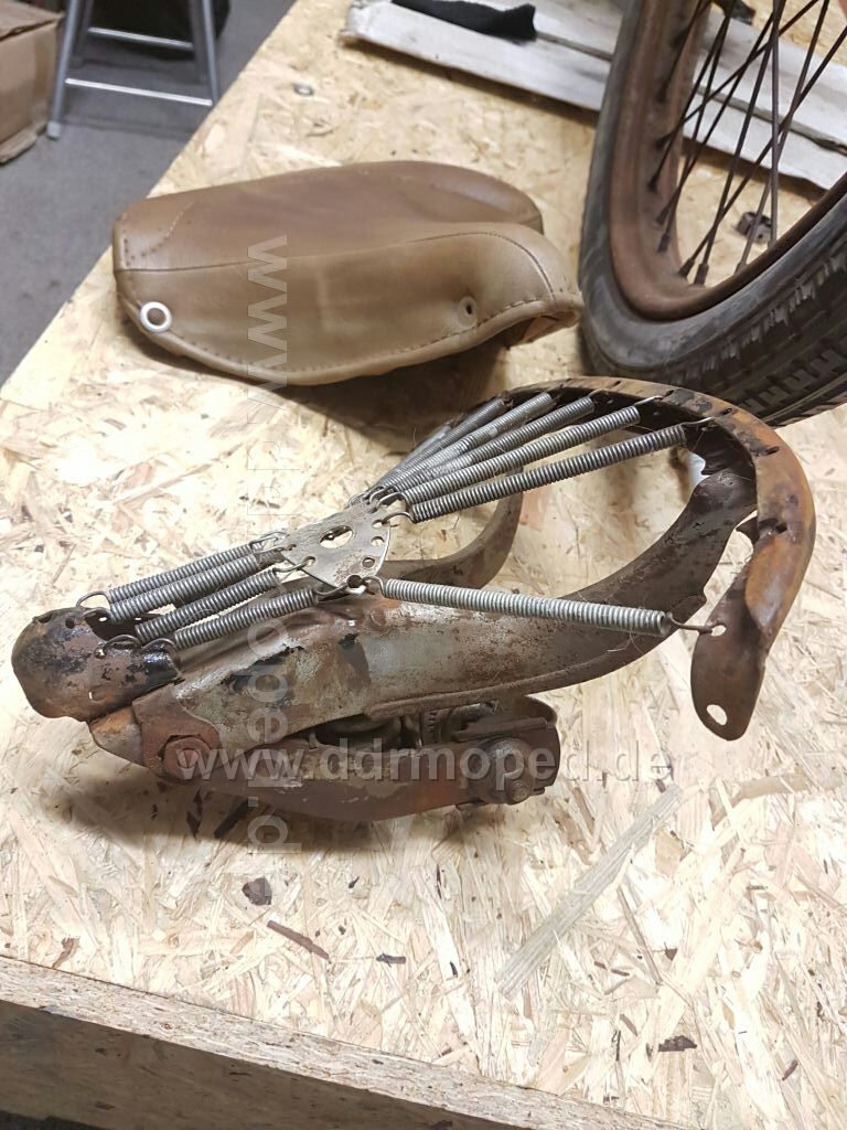 So sah mein Satteluntergestell auch aus . Ich habe das Gestell schwarz lackiert, neue Federn eingesetzt,das Mittelteil entrostet und dann "ovatrolisiert".
