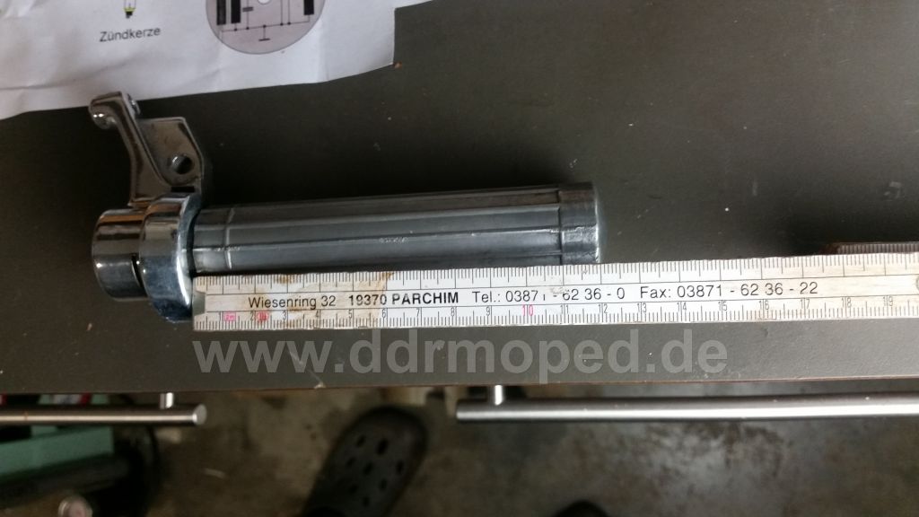 Jetzt bin ich verwirrt, bin mir zu 100% sicher, dass ich den richtigen Gasgriff habe, setzte ich den Zollstock an komme ich auf 120mm, 128 würden überstehen.