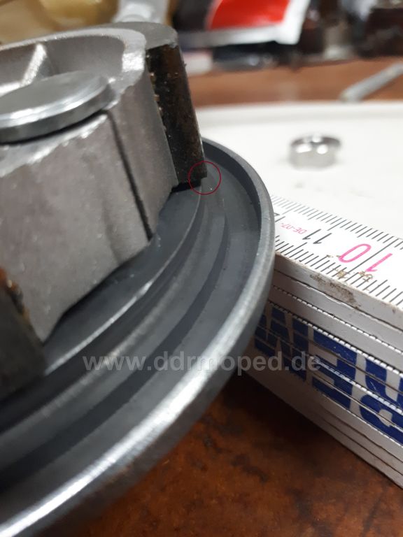 Hier das Bild mit dem neuen Bremsbacken. In der Kreismarkierung der Überstand