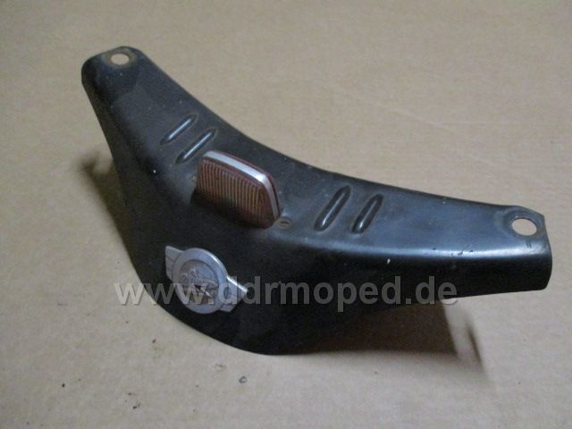 Ein Lenkerblech für Schwalbe KR51/2 im schwarzen Originallack. Mit DDR Parklicht ( Funktion ungeprüft ) und Emblem. Parklichtschrauben wie üblich verrostet, Fassung gebrochen, hält aber noch.