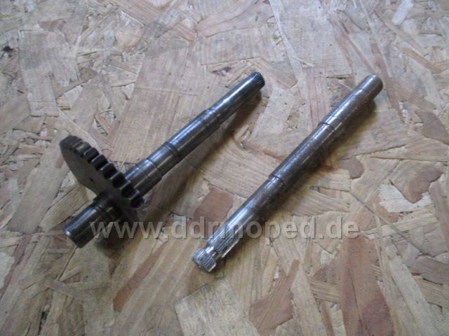 Neue DDR Kickstarterwelle, zum Selberbauen. Ohne Zahnsegment, also kann man sich noch aussuchen, für welchen Motor ( M53, M54 ) Eine defekte Welle vom M53 gebe ich dazu, Zahnsegment ohne Karies