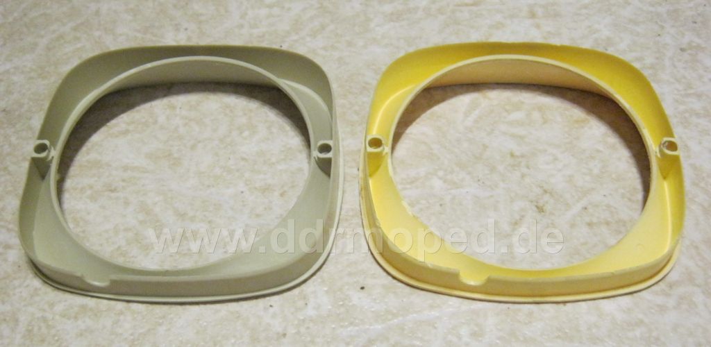 @ SimsonSammler1234: .....zwei kleine Unterschiede zum original gibt es: die Farbe und der Rand der Draufsicht ist 3,5mm statt 5mm (original) 1. Ja, der passt 1:1, sitzt schön stramm in der Lampenmaske. 2. Preis am 25.04.19 war 7,96€ links der Nachbau, rechts der originale von meiner Schwalbe