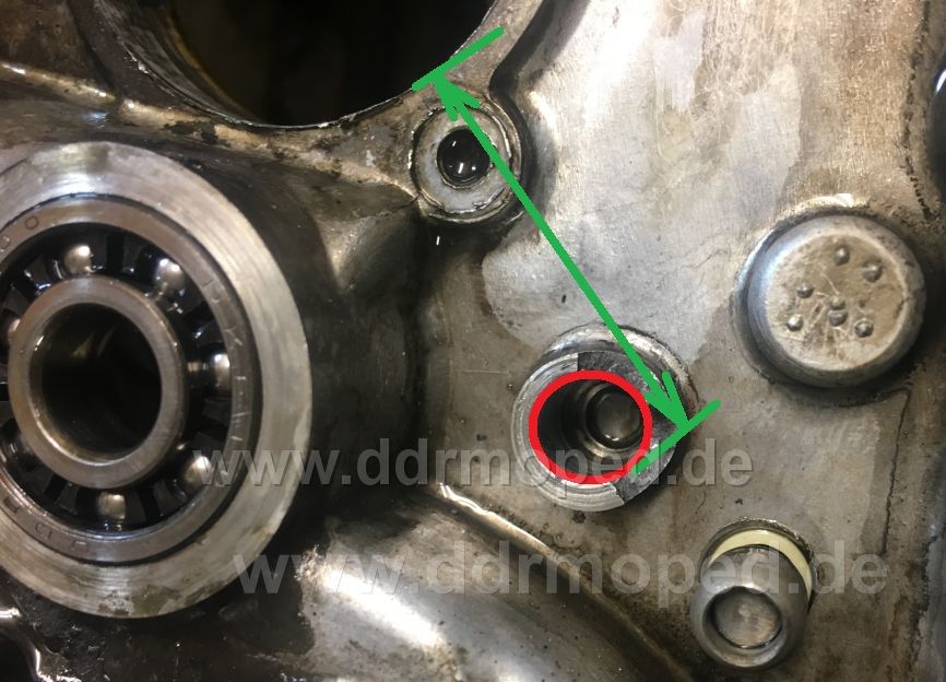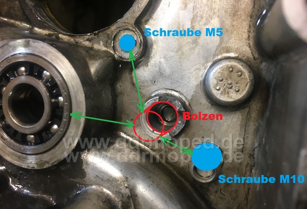 Falls du zufällig ein offenes Motorgehäuse oder die rechte Gehäusehälfte eines M53 rumliegen hast, kannst du die ganze Prozedur, die Bohrung in die richtige Position zu bringen, dort erstmal prima üben.