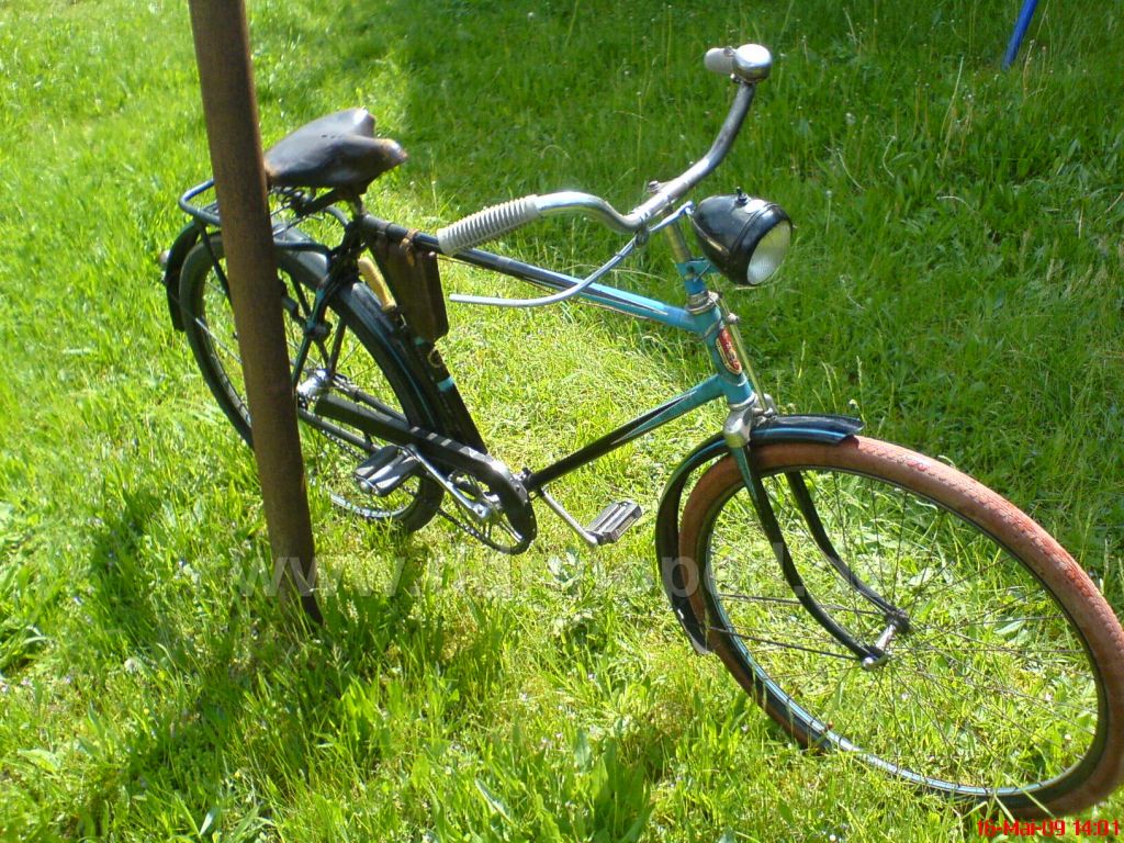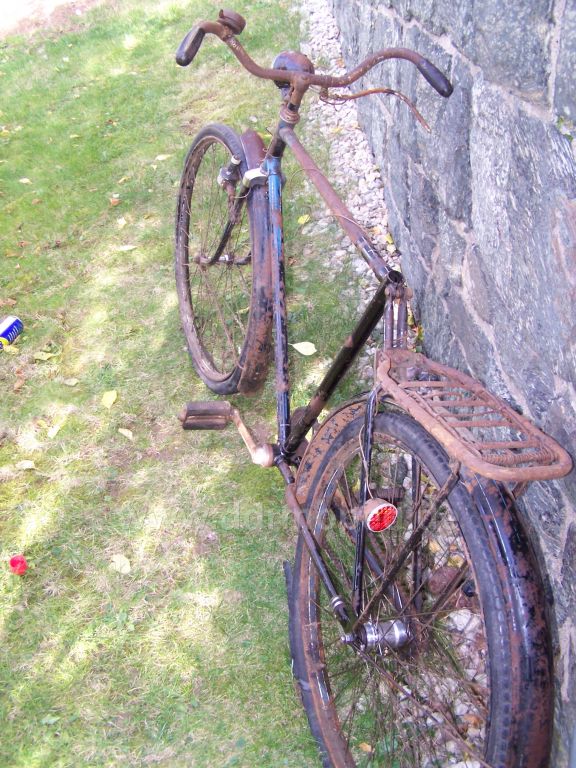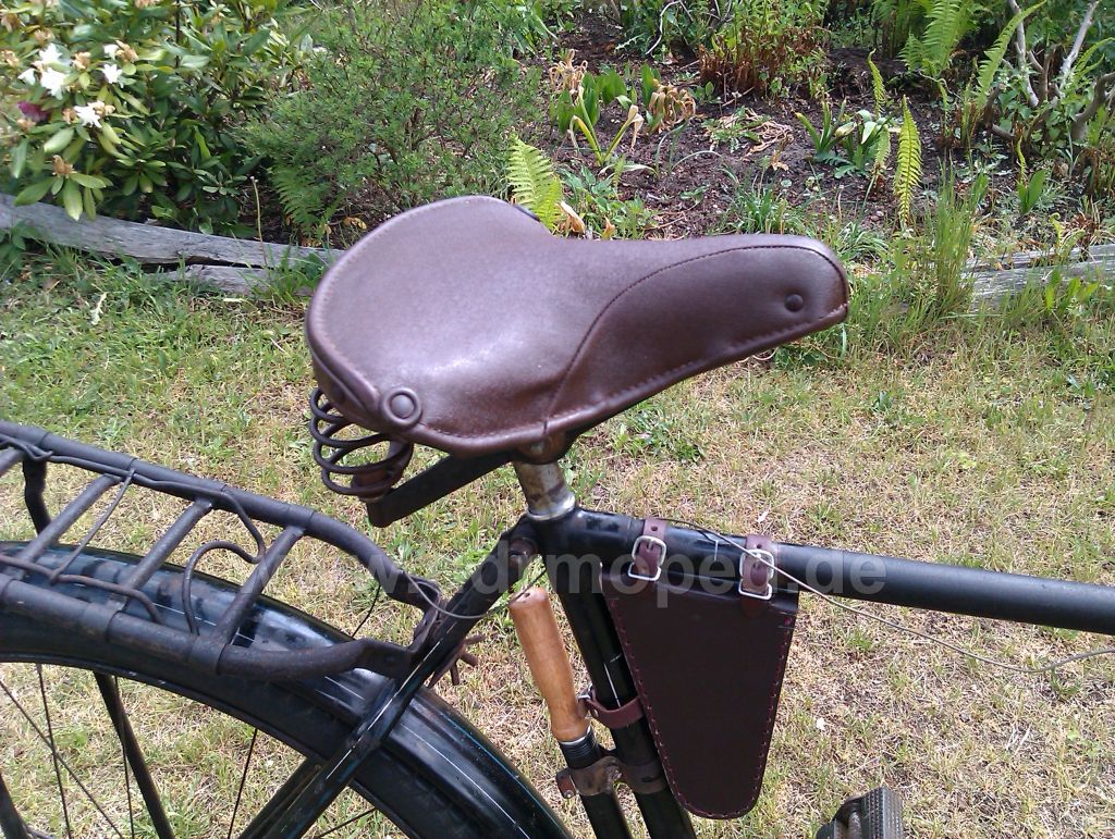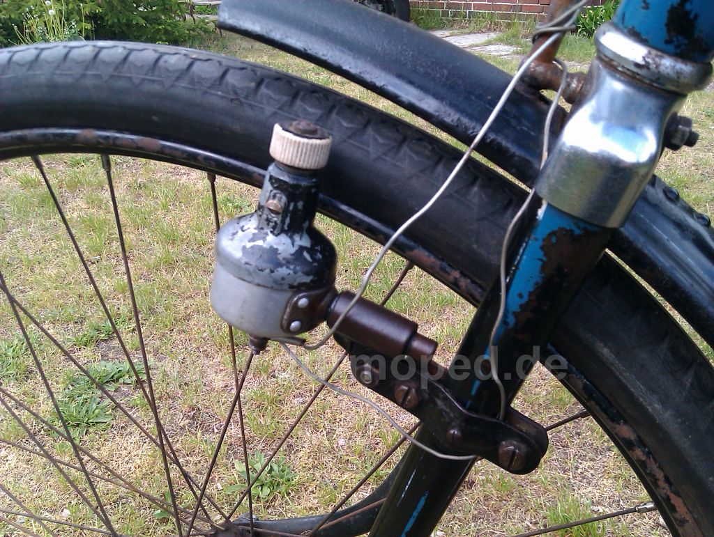 Ich möchte auch hier wieder etwas aktiver werden und daher beschreibe ich mal wieder den Werdegang eines Rades, welches ich vor zwei Jahren erworben hatte im angefangenen Restaurationszustand a'la 0815. Schutzbleche waren schwarz nachlackiert und dick blau liniert. Die Vorderlampe, sowie die Lenkergriffe waren optisch mehr als daneben. Ein Kettenschutz war verbaut und auch die hinteren Streben waren dick blau liniert.