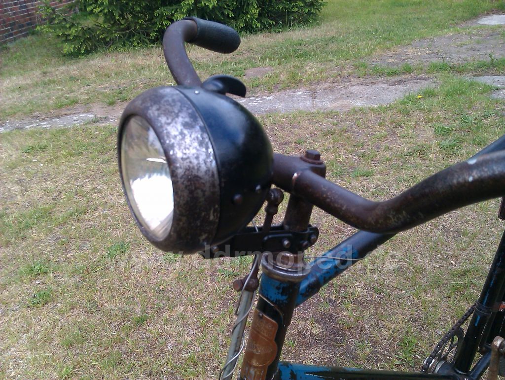 Die vordere Lampe ist wohl Bosch, war aber sicherlich günstig zu bekommen und wurde gerne verwendet/nachgerüstet, bis jetzt hatte ich so eine an 2 anderen Simson Diensträdern ebenfalls dran. Und wenn man einmal damit bei Dunkelheit unterwegs ist, weiss man es zu schätzen, die Ausleuchtung ist vergleichbar mit einem Mopedscheinwerfer.
