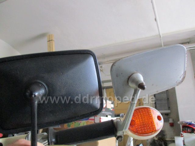 Der hier gezeigte "Slusia" mit Blechgehäuse kam bereits 1968 und wurde bis 1974 mit verschieden geformten Spiegelarmen gehandelt.