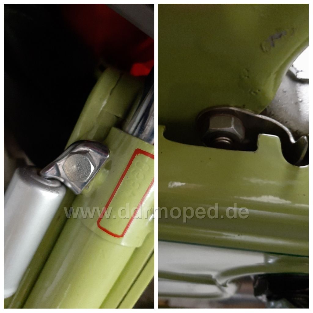 Hallo Wolfgang, hast du eventuell ein Bild, auf dem die Details zu sehen sind, ich habe da im Moment echt keinen Plan. Die obere Halterung sieht aus, als sein es einfach nur ein Blech, das zwischen der Sattelhalterung eingesetzt wurde.....oder liege ich da verkehrt: