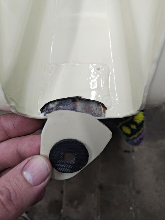 Hier endlich mal ein kleines Update zum Thema Tanklasche. Es ist eine Kombi aus schweißen und kleben geworden. Vorweg muss ich noch zugeben, hatte ich den Tank verbaut OHNE eine kleine Metallhülse zur Befestigung hinten. (Aber auch nur weil im 66er ETKA keine Hülse ausfgeführt ist und es auch keine verbaut war, als ich den Sperber bekommen habe. Habe mir da ehrlich gesagt auch nicht weiter Gedanken zu gemacht) Nun ja, jetzt folgen mal ein paar Bilder..... Hier zu sehen der Ausgangszustand: hatte erst gedacht, es wären einfach die Schweißnähte gebrochen, aber nein es ist noch anders gebrochen.