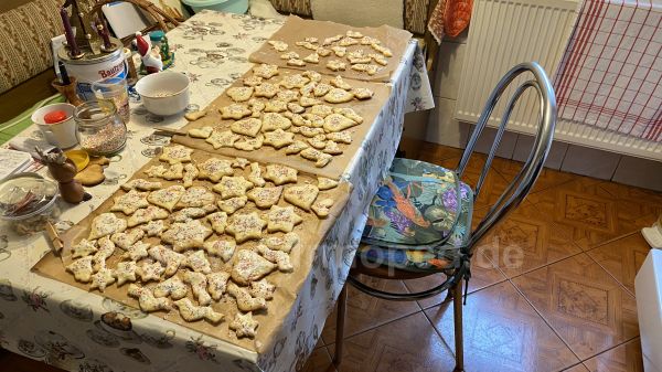 Weihnachtsplätzchen gibt es natürlich auch alle Sorten und in wirklich super Qualität zu kaufen,aber da haben wir die Tradition noch aufrecht erhalten. Und Plätzchen backen bei winterlichen Adventswetter macht doch auch Spaß.