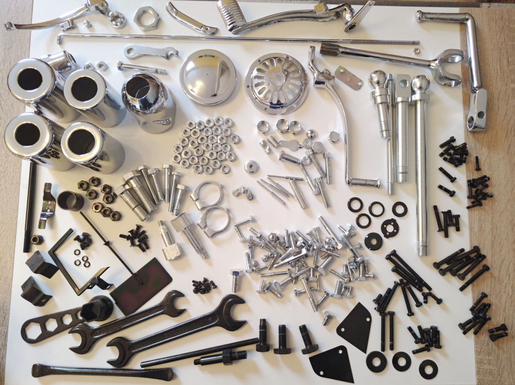 "diverse Teile: entfettet, entzinkt/entlackt, verzinkt und schwarz chromatiert"