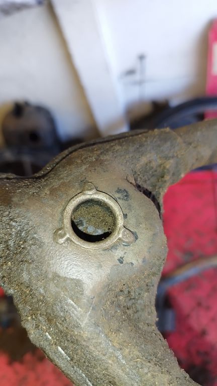 So, jetzt habe ich Mal wieder Zeit für das Forum .Ich möchte auch nicht langweilen mit jedem Gackel Detail. Nur so viel, ich habe große Fortschritte bei der Tachometer Reparatur gemacht, aber der Aufwand ist unfassbar zeitintensiv Ich musste mir neue Fähigkeiten für Feinmechanik zulegen,... Okay, Michael, meine Aufhängung ist definitivl anders als auf deinen Bildern. An der RT ist eine halbrunde Lasche unterhalb des Rahmenrohr angeschweißt, und mit anderen Bildern im Netz passt das so. So, ein zwei neue Fragen: Die allermeisten RT haben unterhalb am Sattelrohr eine Gummimuffe als Schutz vor Wasser und Dreck. Doch der " Flansch" am Rahmen ist so derart kurz, da hält keine Muffe, und deren Öffnung müsste auch noch eckig sein. Kommt da überhaupt eine darüber?  Es dauert zwar noch etwas bis dahin, aber sind die Oberfläche der beiden Halbnaben hitzefest lackiert, oder galvanisch behandelt? Bei meinen sehe ich nur Rost und sonst nix