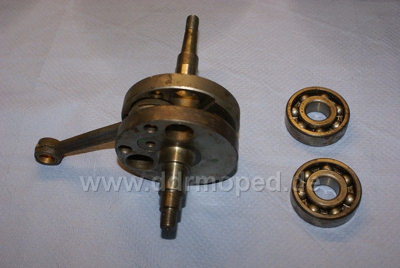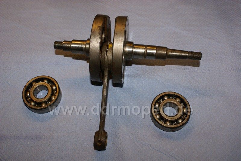 |  Mario .  Das ist die Welle für M 53 (also, KR 51 und SR 4-2) von 1964 bis Frühjahr 1966 . Diese hat noch den alten rechten Kurbelzapfen im Konus 1:10 .   Das untere Pleuellager ist ohne Käfig und hat nur Kurzrollen . Oben war immer Bronzebuchse .