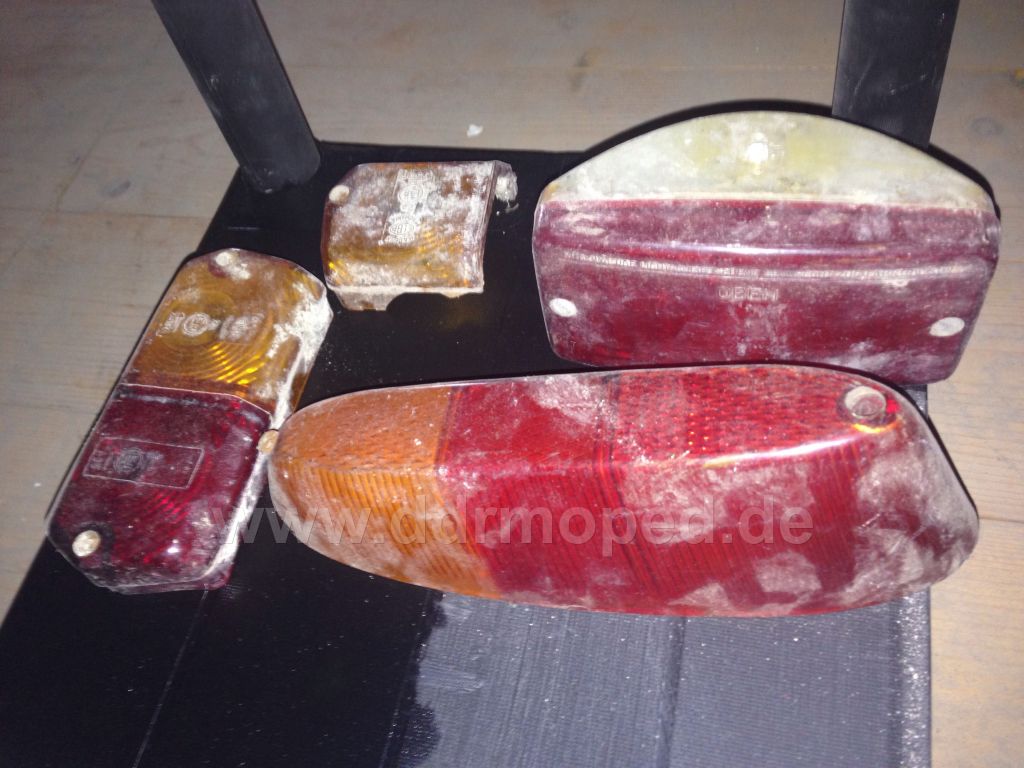 Das Rücklicht dürfte von einem Diamant / Mifa Fahrrad sein, bei der Klingel rechts könnte das sein das da eine Königslilie drauf ist ? sollte das der Fall sein kannst du sie auf ein Mifa/ Diamant drauf bauen bzw. dem Simson Mofa 1.