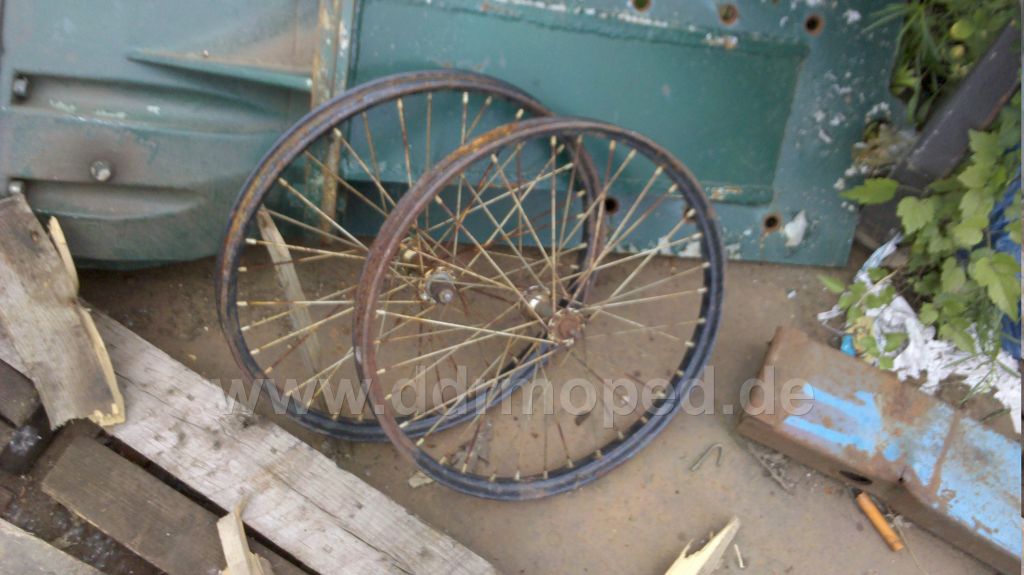 So, da ich grade mit Nico im icq streite hier noch ein Bild von nen Paar Felgen die auch aufm Schrotplatz sind, Ich meine das ist die Größe vom Klapprad, und die sind kleiner als die vom Simsonhänger, und schmäler, oder täusch ich mich da?