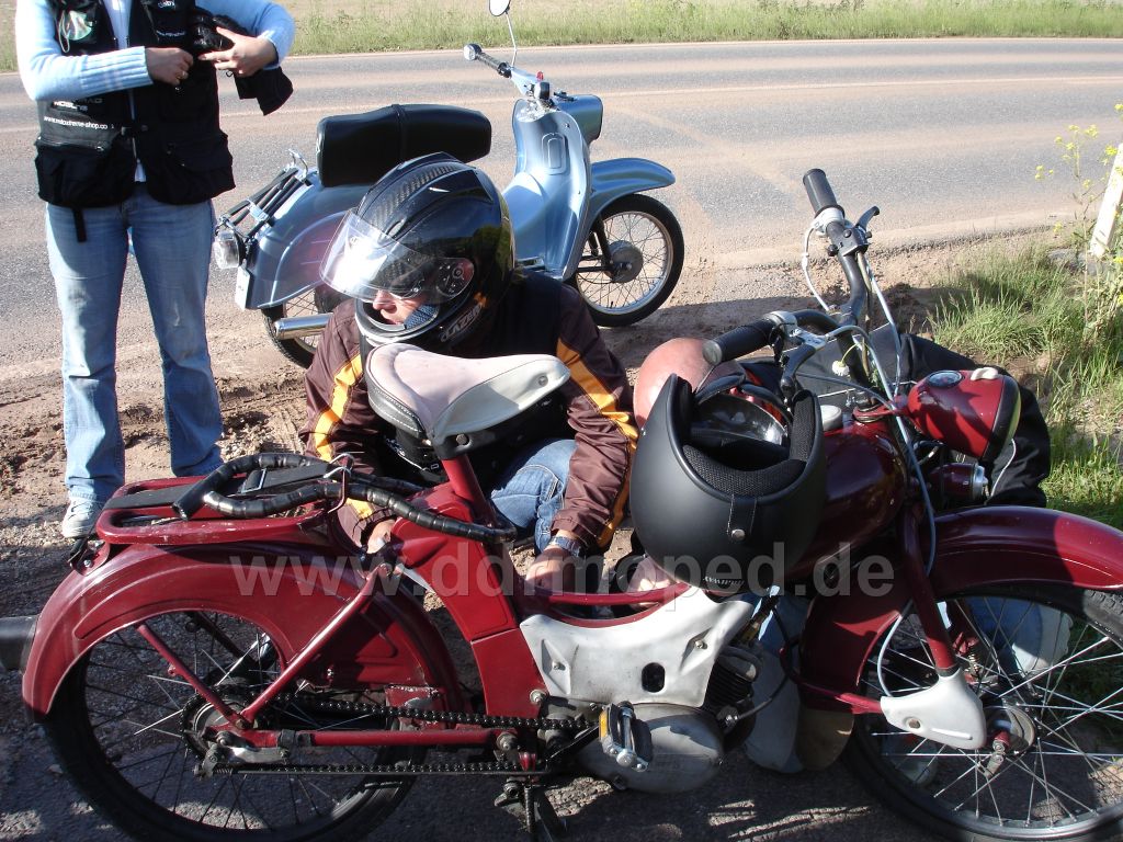 rückzu dann am Samstag die Zitterpartie, andauern fiel etwas an diesem Tag aus, ich machte auf dem Hinweg auch noch zwei ungewollte Anhaltemanöver mit der 65er F und am Teich wurde dann der Vergaser nochmals nachjustiert, dass sollte dann auch bis in die Heimat der Letzte Handgriff an der Technik gewesen sein. Aber dafür waren jetzt Andere eifrig dran.