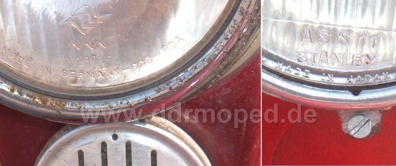 Könnte daran liegen, dass hier eine ganz andere Lampenfassung nebst 35W Birne (russisch) eingebaut ist, edit, ich aber nur eine 18W Stopplichtspule zur Verfügung habe. Der Versuch die Schwalbe zu "beklauen" ist fehlgeschlagen, weil die Fassung größer ist, als bei den normalen Simson. Hat wer Ahnung, ob das Original Neckermann ist, oder ob das Nachbau mit Gefriemel ist? Bearbeitet von SR4-1K am 11.04.2009, 04:32