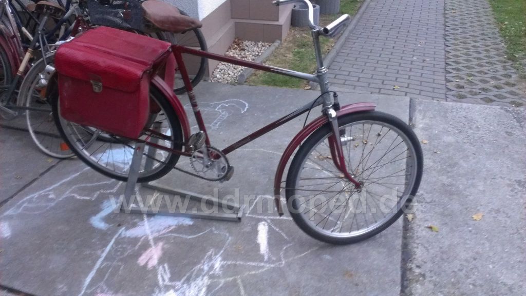 Nun habe ich, nachdem es mir schon versprochen war, dieses späte Luxus-Sportrad (mit Rücktrittnabe) von meinem Großvater geschenkt bekommen. Gekauft vor 2-3 Jahren für etwa 70 Euro in Berlin (eigentlich kaum zu glauben).