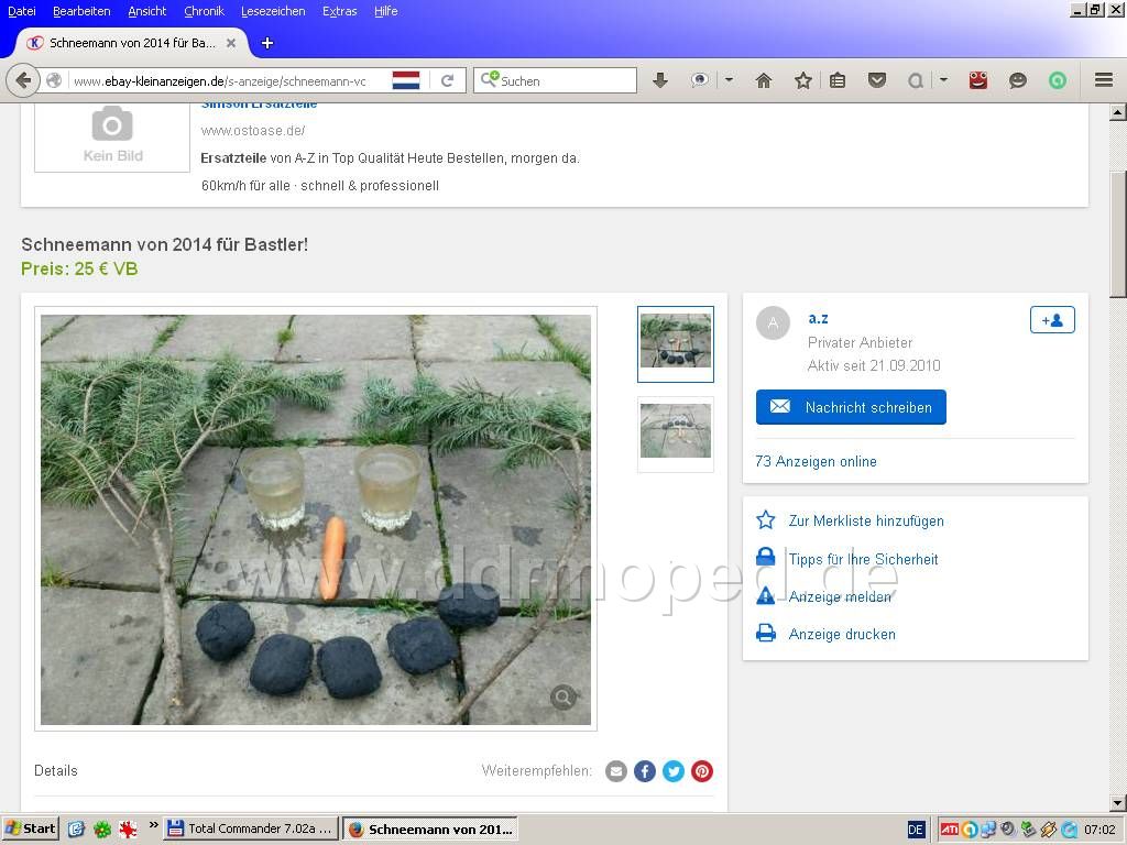 Die Verkäuferin präsentiert ihm einiges: "Hier haben wir z.B. Barbies Wohnmobil für 40 Euro, Barbies Traumschloss für 50 Euro, Barbies Pferdehof für 60 Euro ... Oder wenn Sie wollen, Barbie geschieden für 300 Euro."