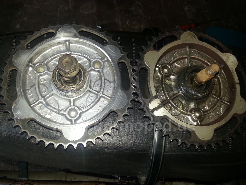 Das hintere Ritzel hatte es auch hinter sich. Mittlerweile ist die gute wieder Fahrbereit außerdem ist nun ein Auspuff von der ETS montiert welcher etwas besser ausschaut und zumal noch besser klingt. Gruß Dirk