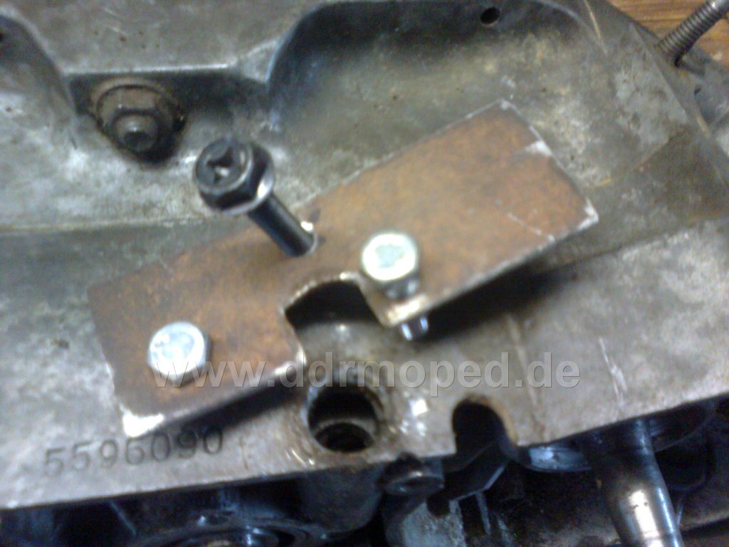 Ich hab schon seit geraumer Zeit einen S51 Motor, der nicht regeneriert werden soll liegen. Das Problem bis jetzt war nur: Der Kupplungsdrücker ging nicht aus dem Gehäuse! Die Kupplung war so fest, das Hammerbetrieb beim betätigen angesagt war  Also zerlegen, Stifte raus und den Schnapperatismus raus. Denkste. Das Teil wollte ne und mit dem Hammer von unten gegenschlagen hat nur die Schweißnaht zerstört... So lag der Motor wegen anderen Projekten also ne Weile rum, bis ich mir einen Abzieher gebaut hab, der heute vollendet und getestet wurde: geht, aber nicht so gut wie gedacht! So siehts aus: PS.: sehr süffiges Loch!
