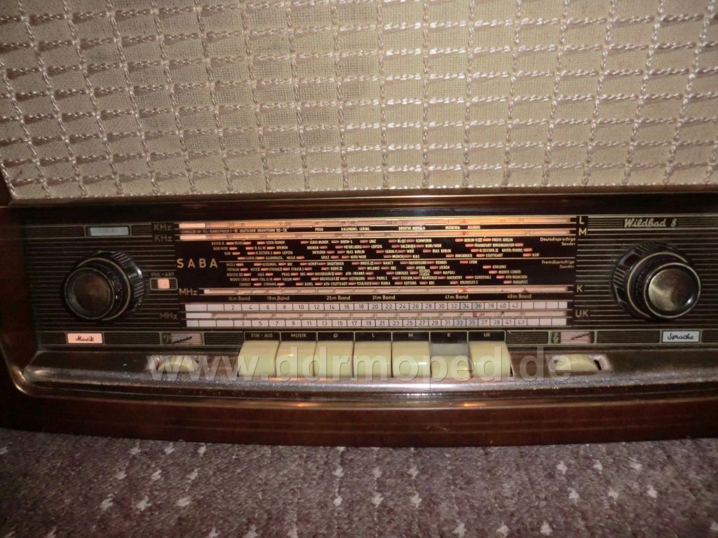 Ich bereite gerade meinen Winter vor. Nachdem ich alles an Holz aufgesägt, die letzten Kohlen bereitgestellt und über eine Tonne Holzbrikett (90 Euro!) in den Brennstoffkeller geschleppt habe, ist dort kurioserweise 1. mehr Platz ale vorher und 2. genug Raum, um mein frisch erworbenes SABA Wildbad 8 zu restaurieren. Hier ein Blick auf die Kommandozentrale mit ihren herrlichen kleinen beleuchteten Fensterchen, die man im Fall der abgebildeten Noten (über den elfenbeinfarbenen Rädchen) wie mit Gardinen einfach zuziehen kann. Wunderschön!