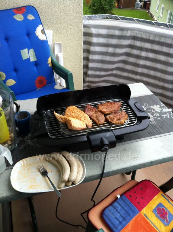 Mit dem knatternden Ding aufm Balkon ist er jetzt der Held.