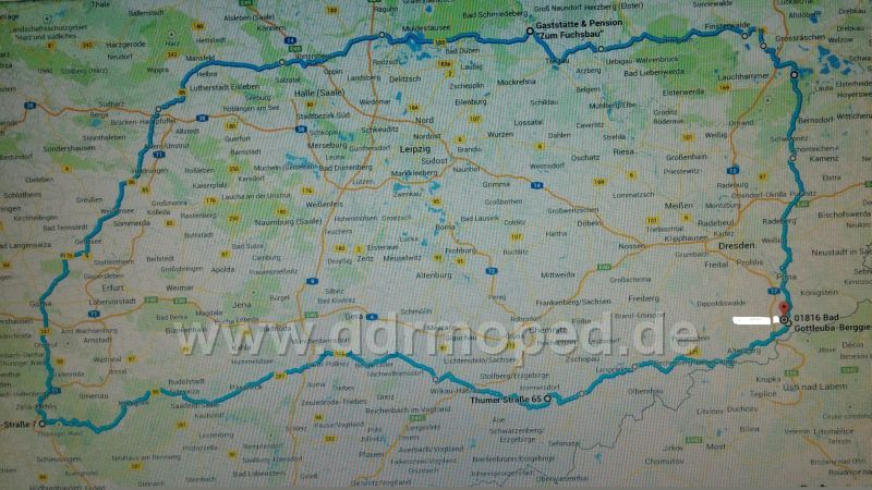 Unten seht ihr die gefahrene Route, durch den Thüringer Wald kann man sehr schön Motorrad fahren, macht richtig Spaß die Kurven und man ist quasi komplett alleine unterwegs