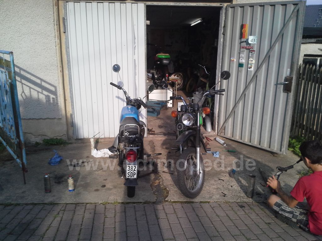 Die Ratsche befindet sich leider im Inneren des Motorgehäuses. Das ist das Teil, auf dem der Bügel sitzt, der im Getriebe das Schaltrad hin und her bewegt. Wenn du den Kupplungdeckel abschraubst, dann ist es rechts oben das Teil im inneren des Gehäuses, wo der schwarze Hebel eingreift der beim Schalten von der Hohlschaltwelle mit dem Schalthebel bewegt wird.