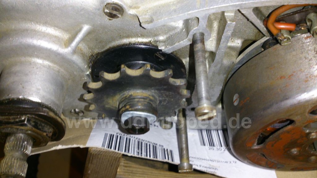 Grüß euch, bin am wurschteln und hab paar Bilder von Auspuff, Tacho und Abtriebsritzel beim SR1. Die Tachobezeichnung ist wohl das Herstellungsdatum, der Auspuff ist schon gereinigt und wieder angebaut. Bei den Ritzeln (das mit "Sägezahn und Nut; am Ersatzmotor) gibt es zwei unterschiedliche Abziehmöglichkeiten (Nut und Gewinde). Alle Beide haben mit 14 Zähne. Hab schon im Forum geschaut, aber die Beiträge zu den Ritzeln schlummer in den Tiefen  .