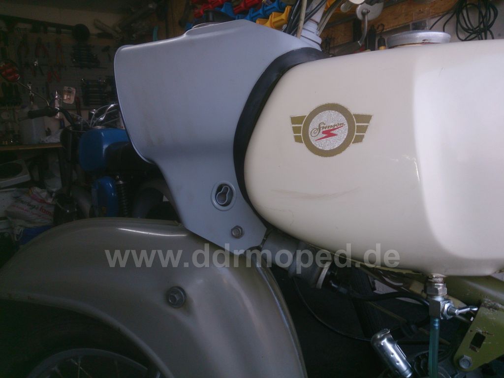 Hallo Alexander, Die Abziehbilder waren mal rot auf der anderen Seite sind noch Rote Reste zu sehen.Bei Mobile auf den Bildern des Verkäufers waren sie auch noch zu sehen nur war keiner 1 Jahr lang gewillt den Preis zu zahlen den er wollte. Zum thema Benzinhahn ich hab doch geschrieben das ich den mit dem Weißen Wassersack besorgt habe, allerdings schön mit Gebrauchs spuren (Wassersack vergilbt  ). Ich weiss schon wie es aussehen muss nur muss ich ihn eh zerlegen zum Reinigen und Konservieren ,da sehe ich erst mal keinen sinn den Benzinhahn vorher noch umzubauen.