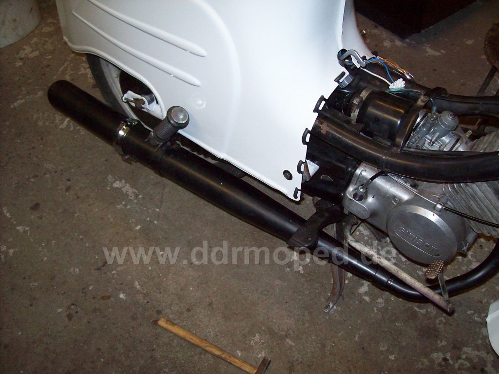 |  Hi Leute, so heut hab ich mal wieder ein bisschen weiter gemacht     Als erstes hab ich die Abgasanlage zusammen gebaut und ans Bike geschraubt     und wie alles an der Schwalbe ist sie auch genau auf den Style abgestimmt     (ich hab nur mal ne frage an meine leser ich hab leider eine falsche schelle beschichten lassen und nun hab ich die richtige drann aber die ist noch verchromt, soll ich sie so lassen oder wieder ab und schwarz machen????????)