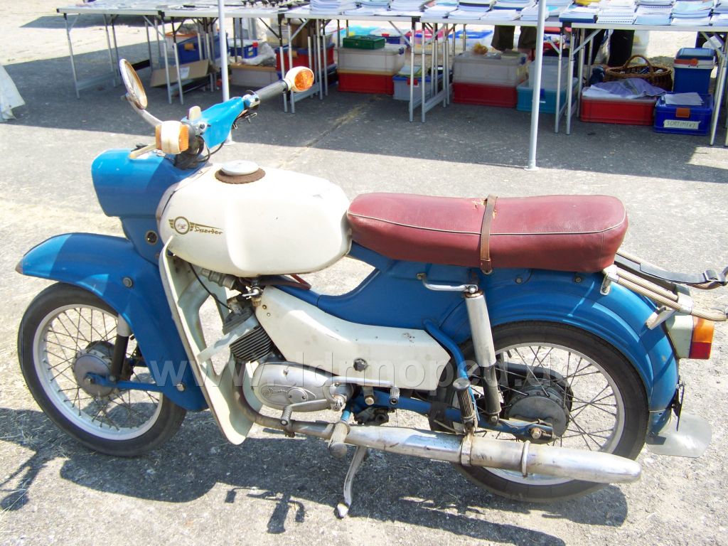 Wo hier gerade von ausverschämten Preisen und so geschrieben wird. Heute war ja wie jedes Jahr wieder einmal das Ostblock Fahrzeugtreffen in Pütnitz/Ribnitz- Dammgarten. Natürlich liess ich mir das auch dieses Jahr nicht entgehen. Naja, als ich jedenfalls in dem Abschnitt "Teilemarkt" rumgestiefelt bin stieß ich auf etwas sehr fein aussehendes. Es war ein Sperber in fast originalem Zustand. Und als ich gerade Fotos von dem Vieh machte, da kam der Verkäufer zu mir ran. Das erste komische war, dass dieser recht junge Mann nicht gerade so aussah als wenn er irgendwas mit Simson am Hut hat, geschweige denn, dass er Ahnung davon hat. Dann meinte er zu mir ganz trocken: "Exzellentes Stück, für einen super Preis: 600€". Ich dachte ich hör nicht richtig und musste erst mal ganz laut lachen. Der Typ war schon richtig beleidigt. Als nächtes meinte er, der Sperber wäre Bj. 1962. Was es nun wirklich für ein Baujahr war habe ich dann nicht mehr geguckt, aber so wie er ausgestattet ist, muss es zwischen 66 und 68er Baujahr gewesen sein. Zum Schluss startete er den Motor zu Vorführzwecken. Und der hat sich alles andere als gesund angehört. Der Sperber an sich war gut aber der Motor war fertig und der Preis mal wieder zum in die Tonne treten. Hier noch ein Bild des genannten Klein-Krad´s.
