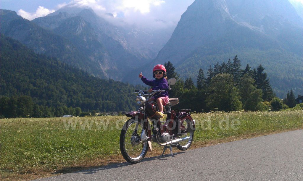 Habe dann meinen kleinen Spatz die Frage gestellt :"Wie gefällt dir denn Moped fahren?".